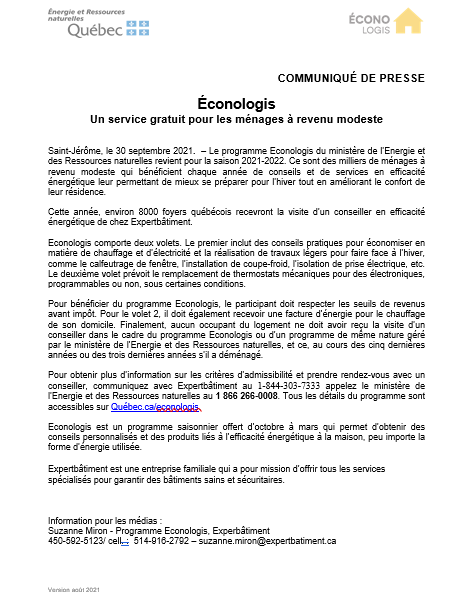 Éconologis, un service gratuit pour les ménages à revenu modeste.